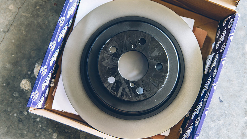 In the rear the rotor was seized to the hub. Check your parking brake before proceeding if you have the same issue. Grab a couple M12 bolts and use the threaded holes in the rotor hat to push the rotor off of the hub.