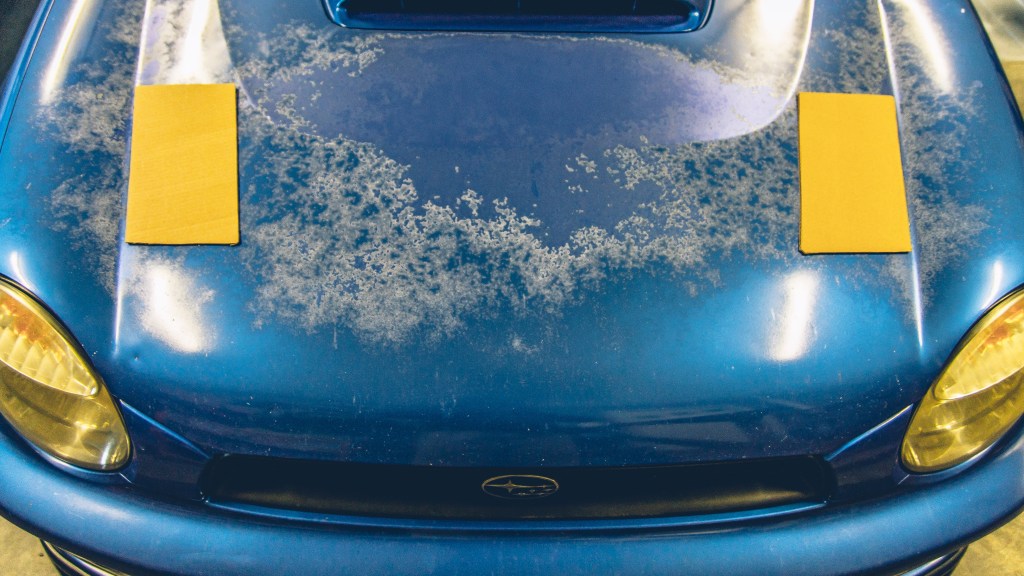 I’m not a huge fan of hood vents, but if they will drop my engine bay temps, then I’m willing to give them a shot. My hood’s paint has already been destroyed by years of Florida sun and IÂ bent the hood by closing it on a can of WD-40; I won’t lose any sleep over cutting up this hood.