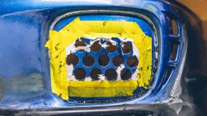 For the fog light covers, I didn’t like the way it looked around the edges or I didn’t trust if the paint would stick to the adhesive so I added a layer of Bondo Glass around the covers.