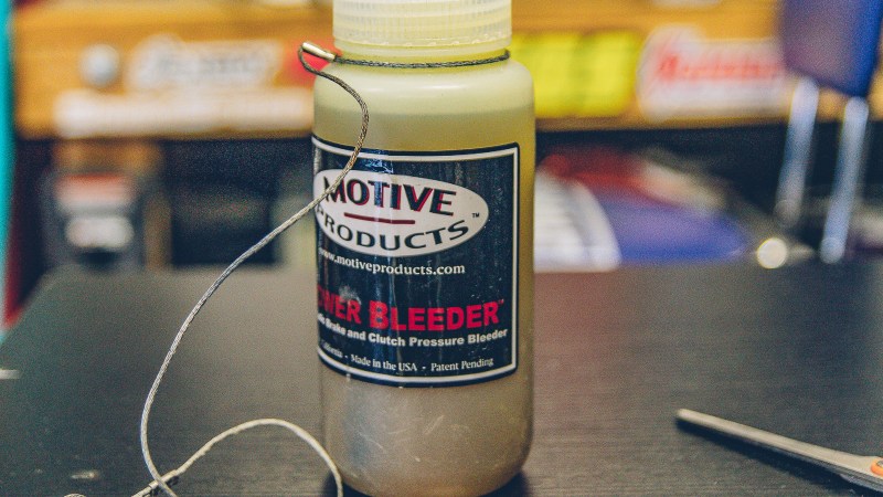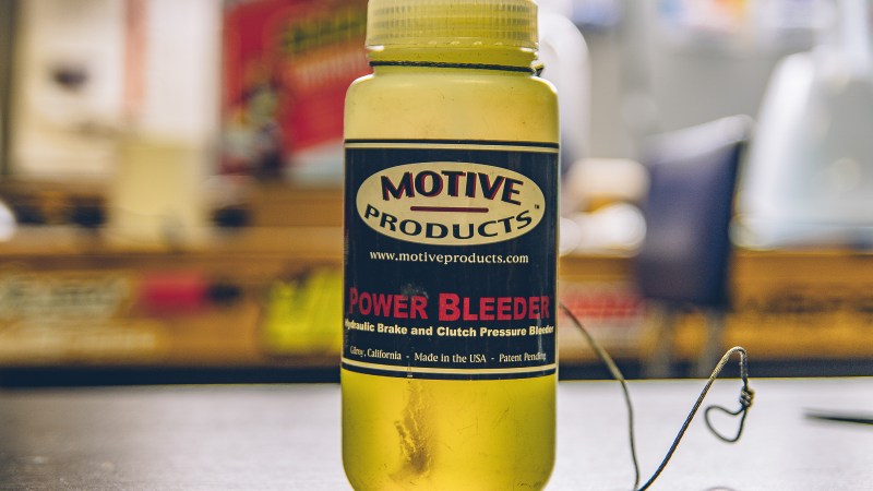 Once the fluid turns clear and there are no more bubbles in the line you can close the valve and move on to the next caliper. Check the pressure and fluid level on the Motive Power Bleeder in between calipers.