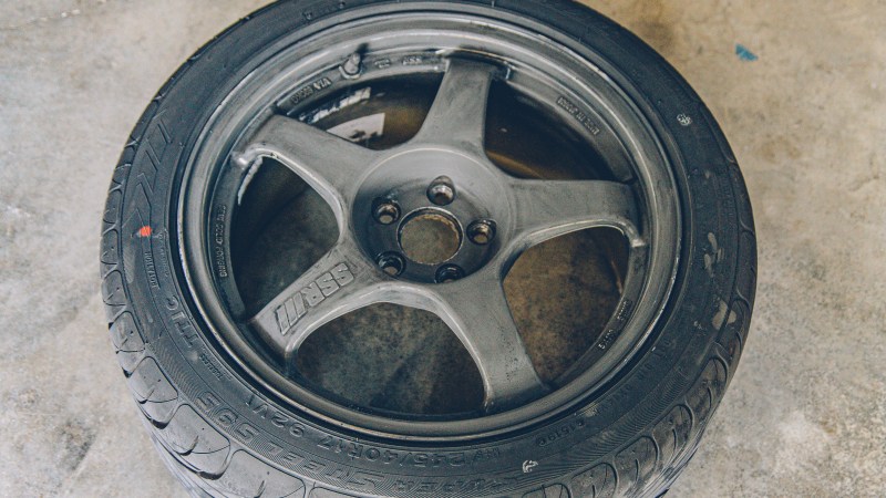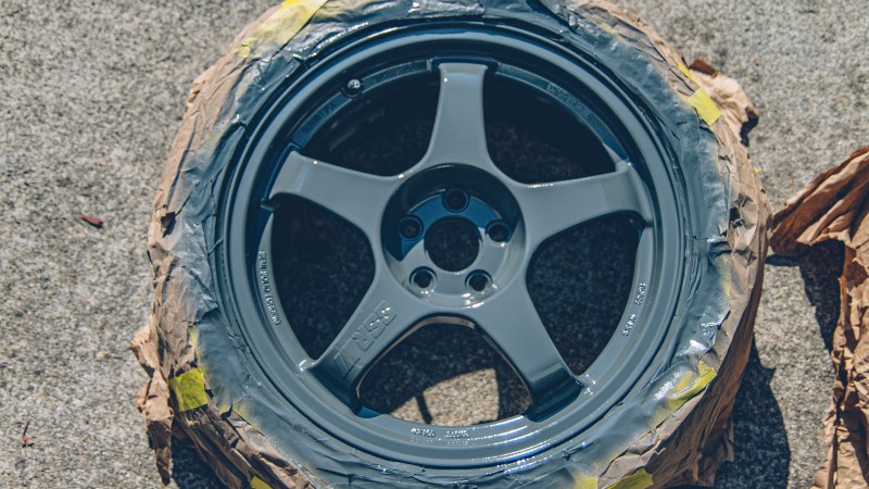 Instead of stripping the wheels down to metal, as the previous paint job held up reasonably well, we can just sand the wheels with 300-grit, primer and paint.