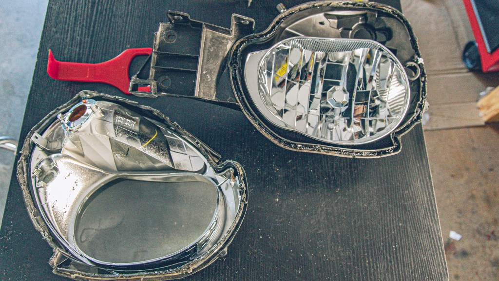 Definitely have a screwdriver or trim removal tool on hand to knock down the strings of sealant as you separate the lenses.