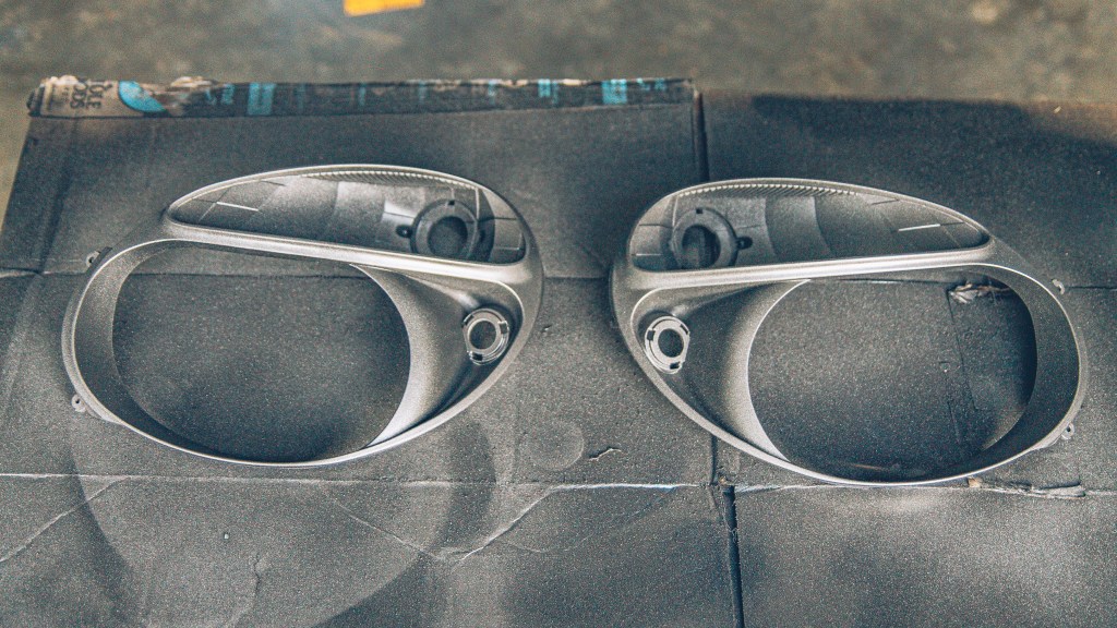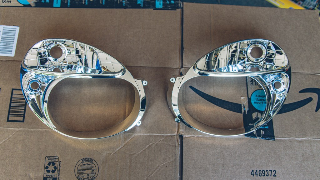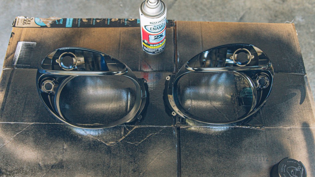 It is here where I would do things differently. I didn’t prime the bezels, nor the reflector bowls or the projector shrouds when I painted them. I had primer on hand, but in the interest of time, I decided to skip that step.
