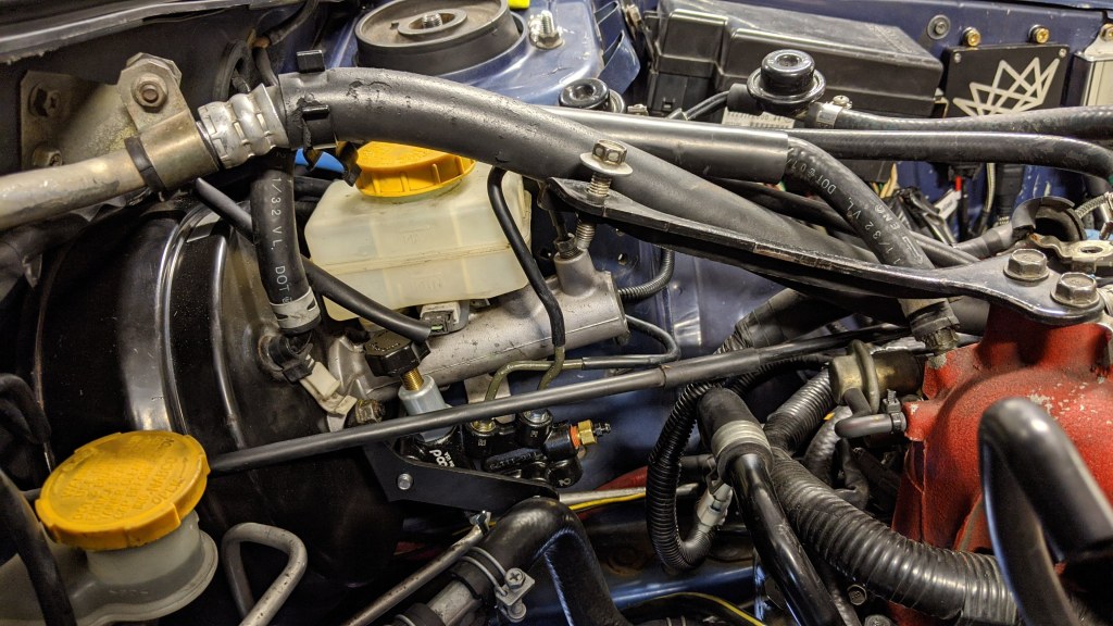 In the next version, I will probably use more of those banjo adapters for cleaner brake line transitions. I will probably move the adjustable proportioning valve to the other side of the master cylinder to tuck it out of the way more. And I think an STi master cylinder will help firm up the pedal feel as well. Overall, I am pretty happy with the results.