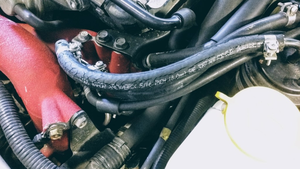 There was a cracked fuel hose that definitely said “Not For Fuel Injection” on it that I immediately replaced. And I pulled the tint off of the door windows. I am not a fan of tinted windows. I will probably get a very mild tint one day; around 35% or maybe higher; mostly to block out some of the Tennessee heat.