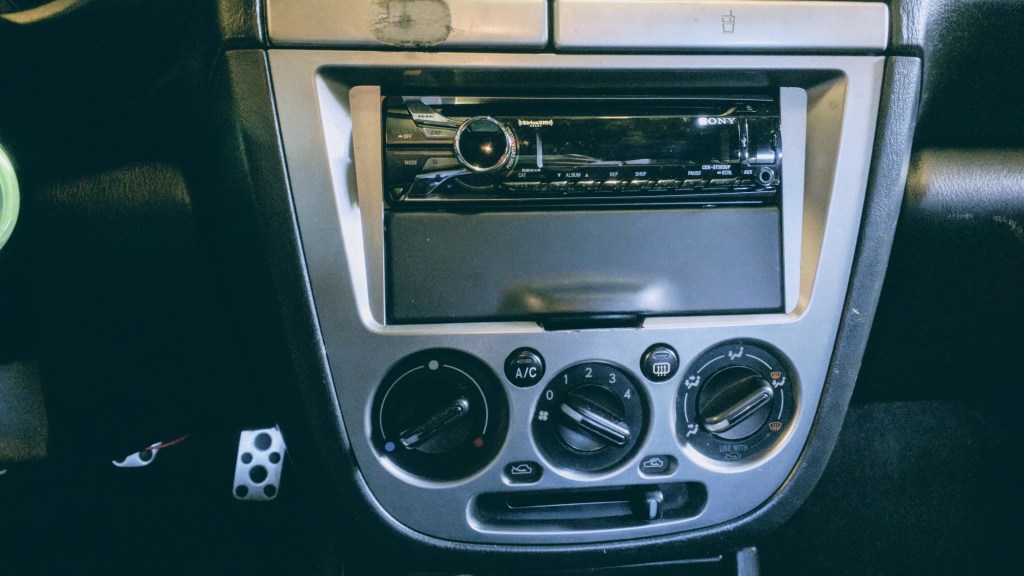 A friend who sold his 2005 STi gave me a bunch of his leftover stash: a Sony head unit, a storage cubby and a Grimmspeed oil cap.