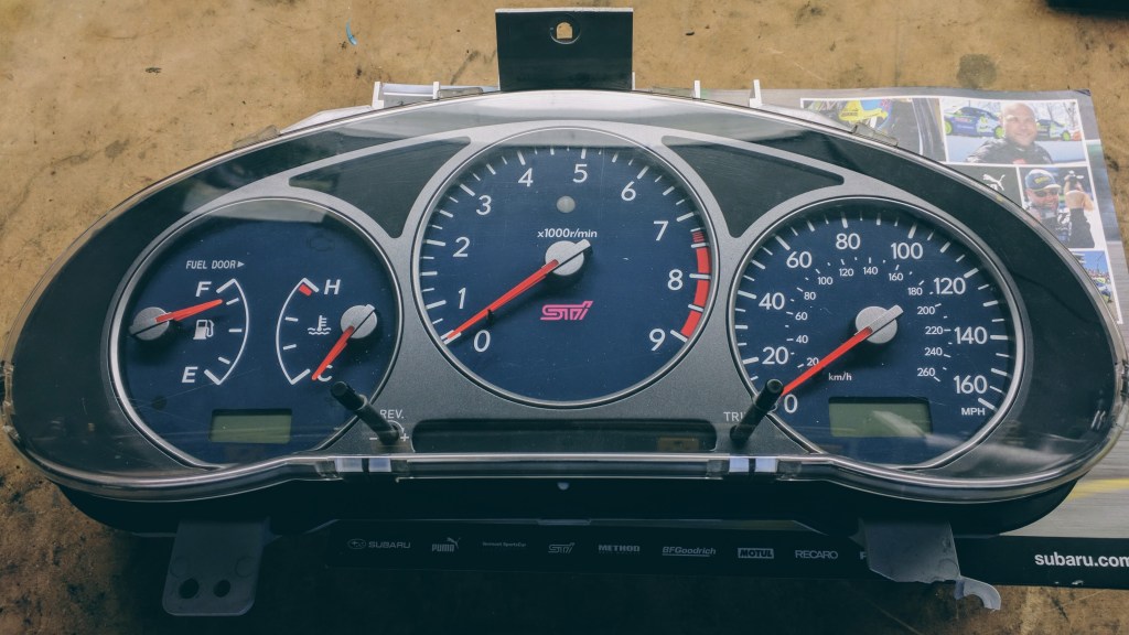 And perhaps one of the best mods I did was swap out my instrument cluster for a UK Prodrive unit. I still need to have it adjusted to reflect my actual mileage; which is closer to 200k now. After owning two Subarus with center-mounted tachs, I couldn’t adjust to the Bugeye setup. The Prodrive cluster lights also match the Bugeye console lighting.