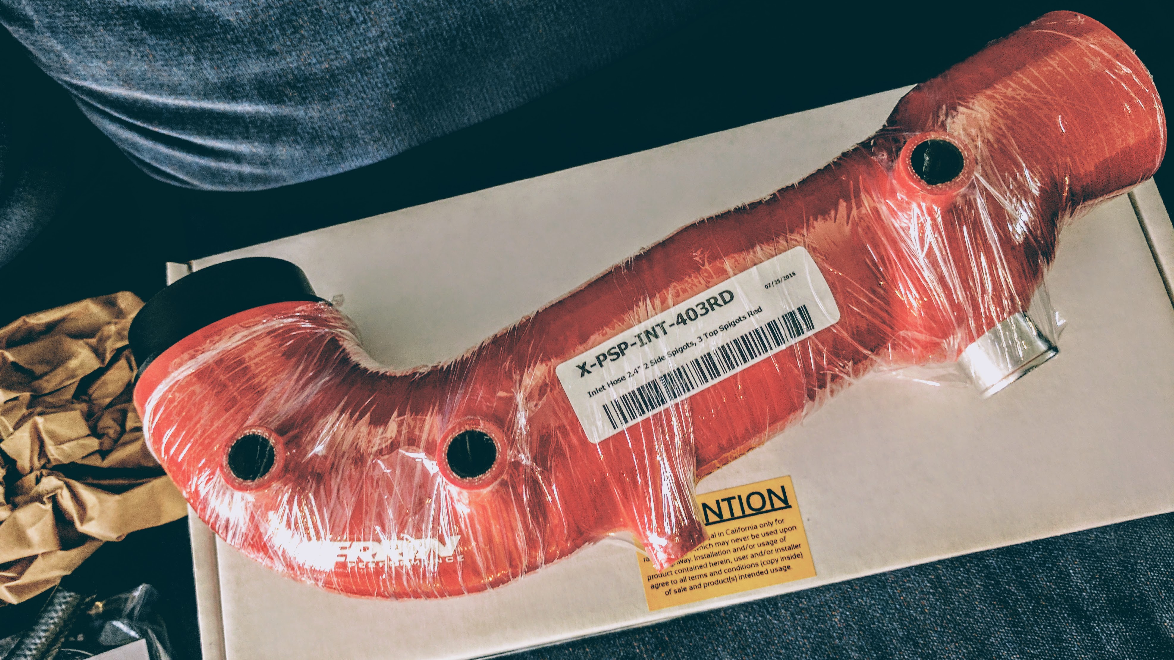 I impulsively bought the red Perrin turbo inlet and immediately regretted my color choice. It looks great in person but I think I prefer the black inlet.