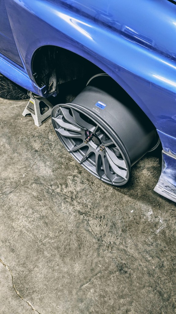 Because the front wheels were supposed to my “forever wheels” I initially planned to pick up a set of 18×9.5 Gram Lights 57DR wheels. However, I ran into an issue with the offset. I wanted a +22mm offset which would have required flares or widebody; which wasn’t in the budget. And with the +38mm offset, I didn’t really want to spend almost $800 on a pair of wheels that would ultimately get replaced.