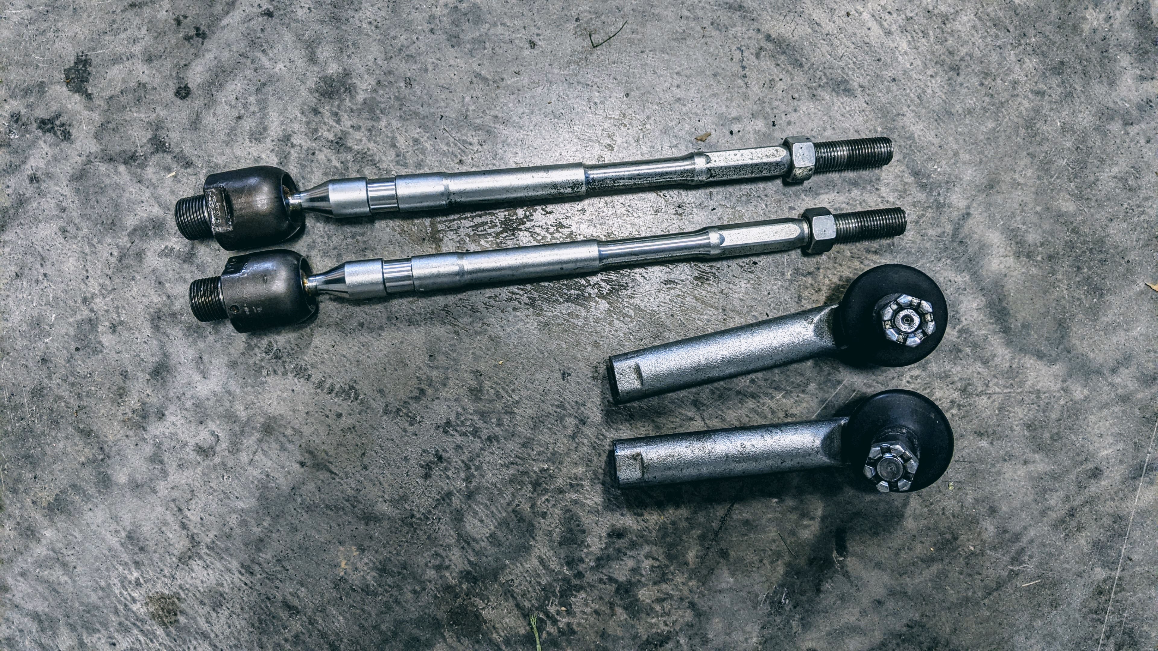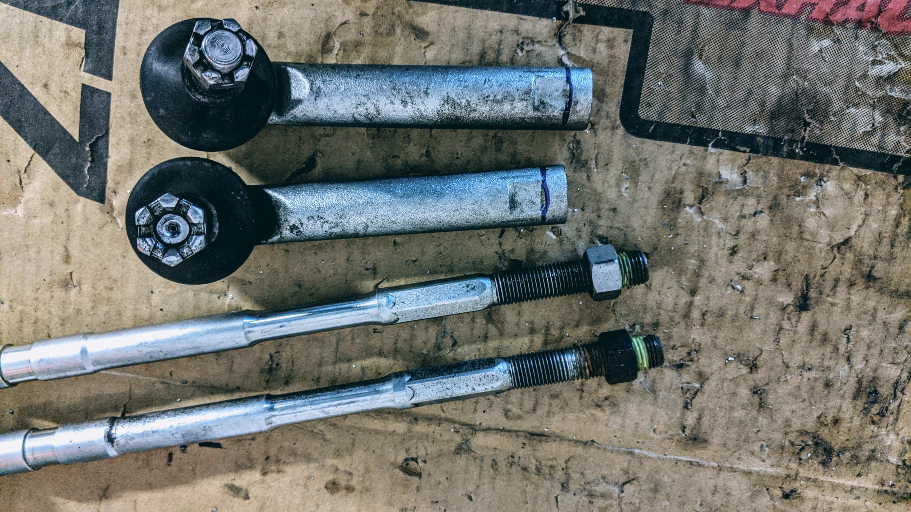I used a roughly a lock nut’s width to remove from both the inner and outer tie rods. Since at a bare minimum that’s how much space we need.