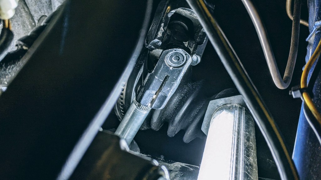 I have a few other odds and ends to attend to, but overall I am pretty happy with how this turned out. I wasn’t even sure if this was even possible, but it seems to be working. We have a GR steering column mated to a BRZ power steering motor, connected to a VA STi steering rack in a 2003 WRX. Crazy.