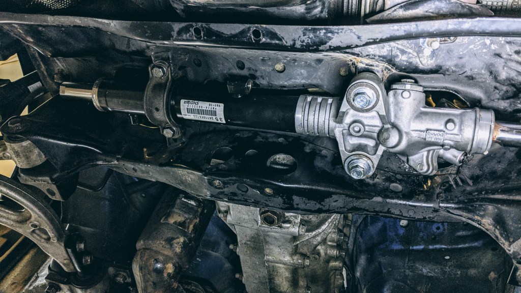 The BRZ steering linkage won’t connect to the rack as it is bottoming out on the firewall.