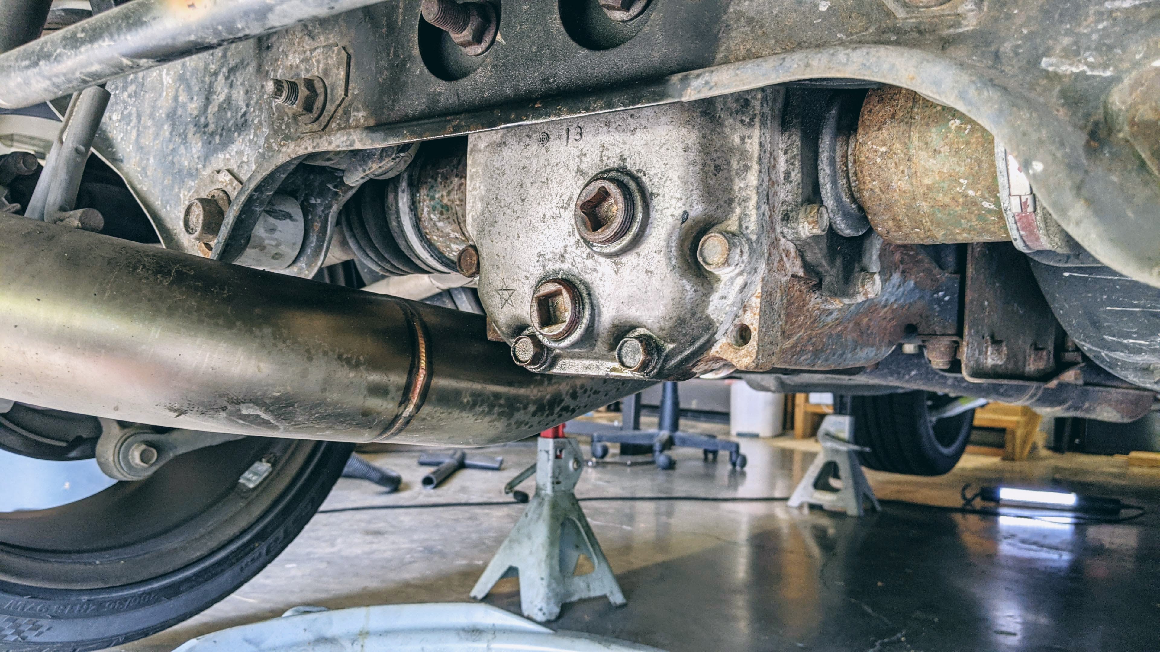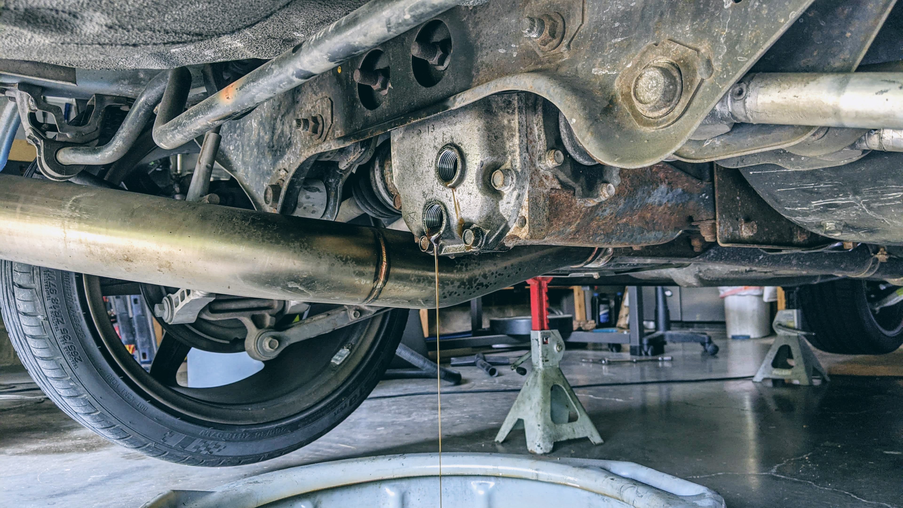 All this talk about converting to RWD reminded me that I haven’t changed the oil in the rear diff yet. I didn’t know if it had ever been changed and after installing the SuperPro Outrigger Bushings, there was a little hum coming from the rear.
