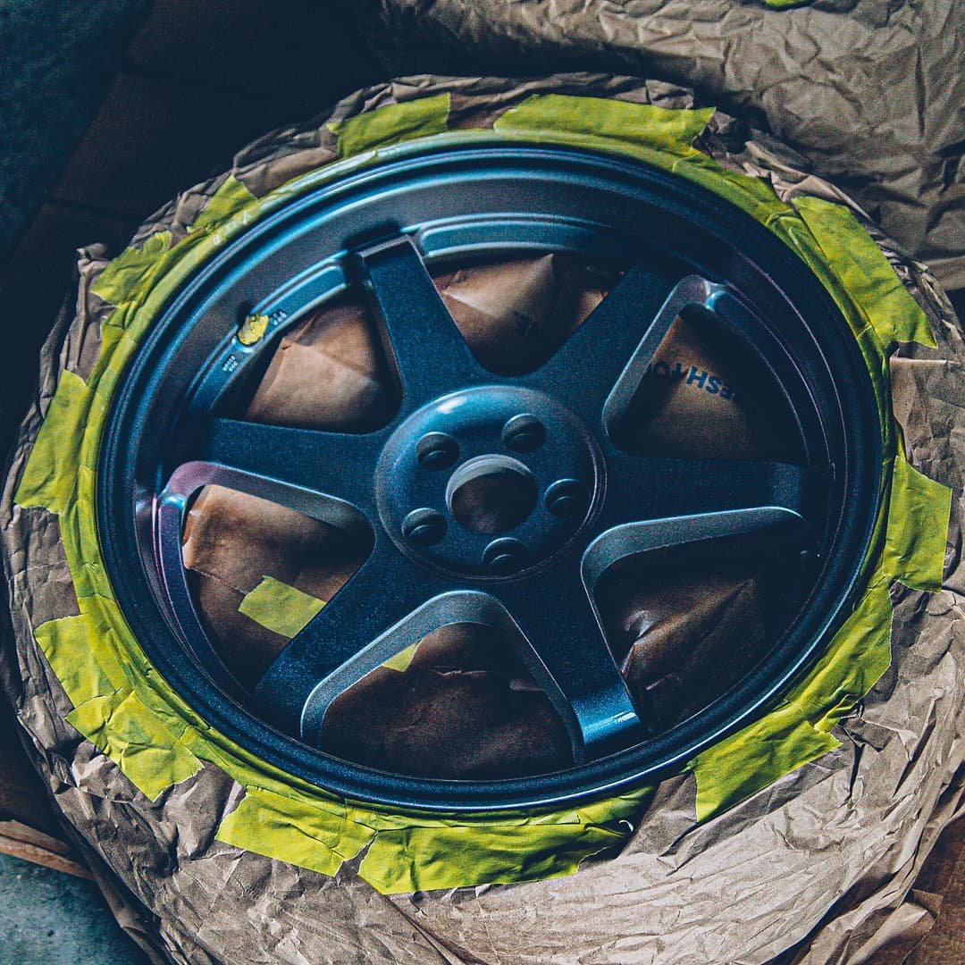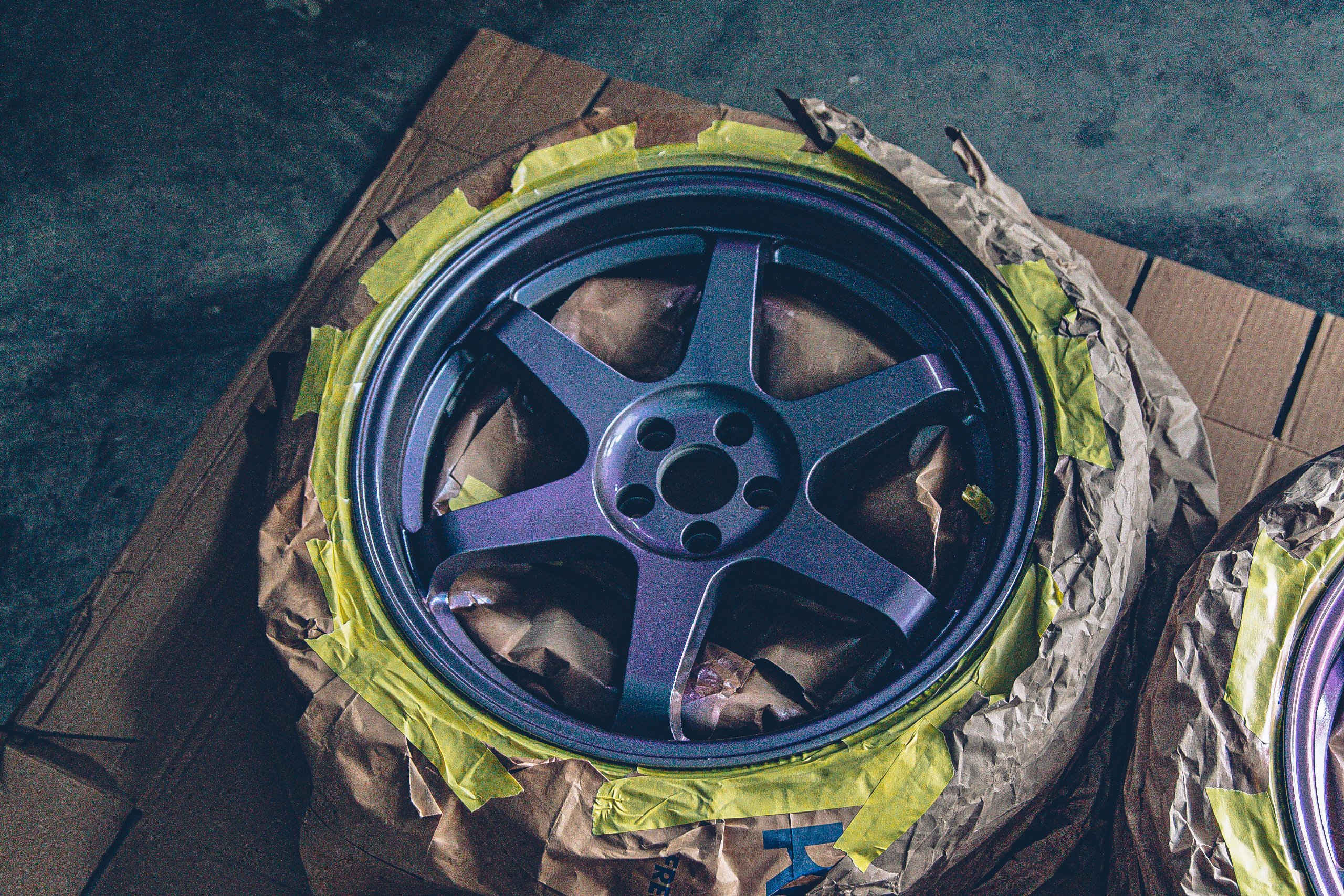 Since the wheels were already painted gunmetal, I gave them a light sanding before spraying the color shift paint, even though the paint calls for a black basecoat. It’s basically a clear coat, so we don’t need to go crazy. I did three coats, and I think they came out great. Like most clear coats, the hardest part is getting good coverage without getting dry spots.
