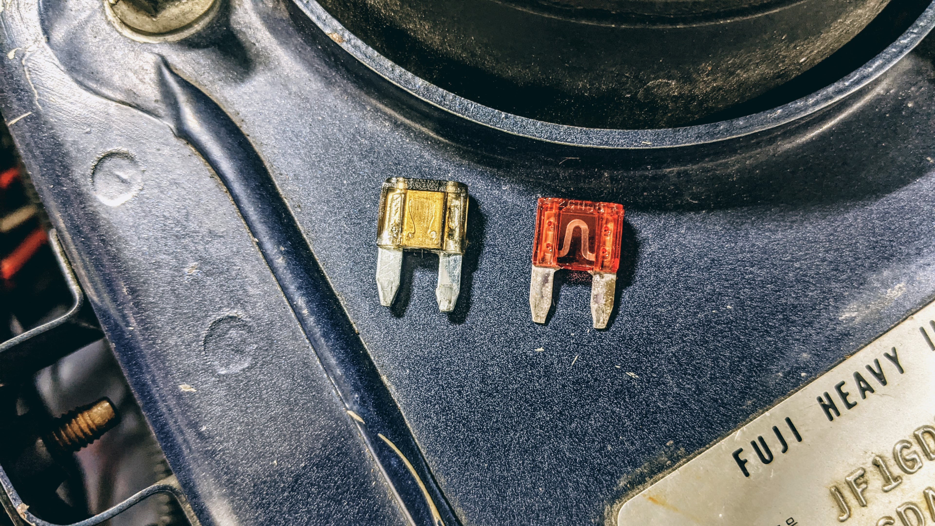 To trick the voltage regulator into putting out about 0.5 volts, we can install a diode with the ALT-S 10a fuse. User 2.5x_sleeper over on subaruforester.org has a good write-up if you want to build your own. I did not want to build my own so I opted to buy a resettable diode from Aussieland.