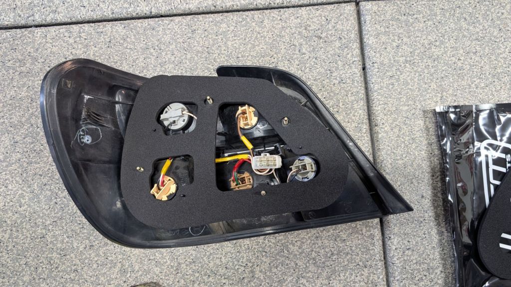 Removing the tail lights is pretty easy. There are four 8mm nuts holding the tail light in place. One on each “side” of the opening. Disconnect the white clip to remove the tail light housing with the bulbs in place.